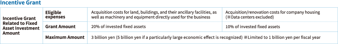 - (1) Fixed asset investment amount: ¥100 million or more (¥30 million or more for locations in the Nanyo region)